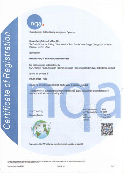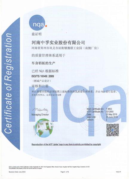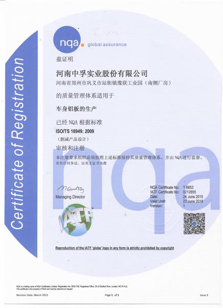 TS16949汽车板认证证书