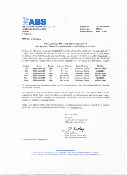 美国船级社(ABS)认证证书
