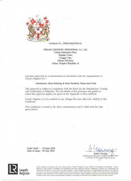 英国劳氏船级社(LR)认证证书
